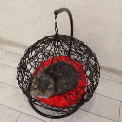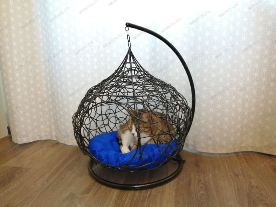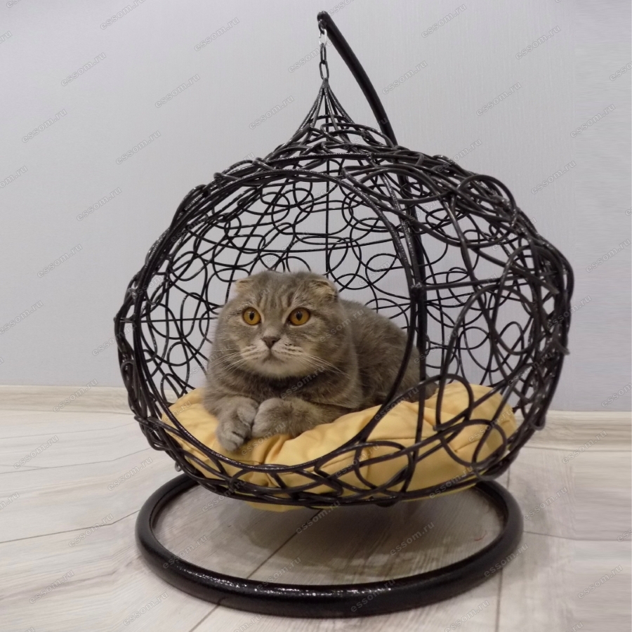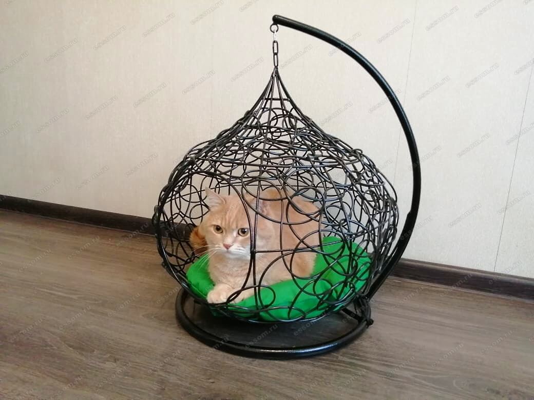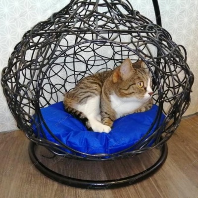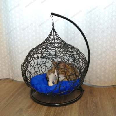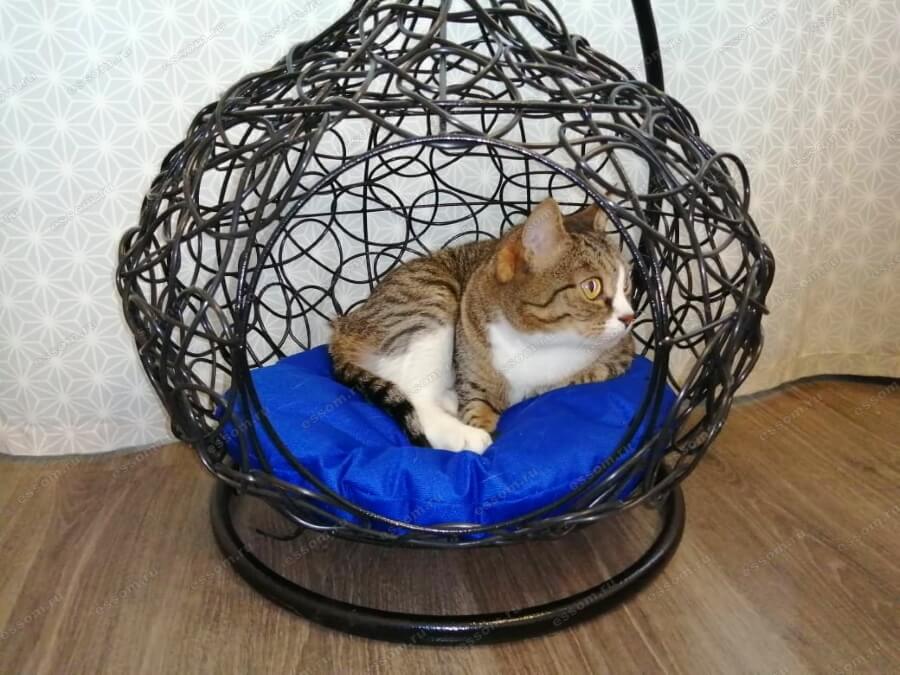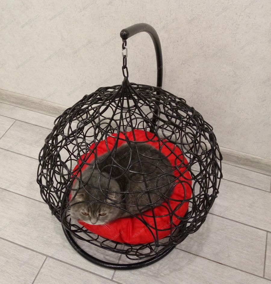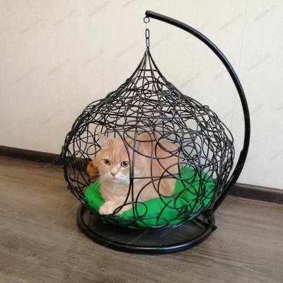 Конструкция подвесного домика на опоре безусловно понравится подрастающим непоседам и взрослым активным кошкам. Благодаря плетеной конструкции, домик дает ощущение собственной территории и вместе с тем сохраняет возможность обзора на 360°, что очень важно для маленького члена семьи.